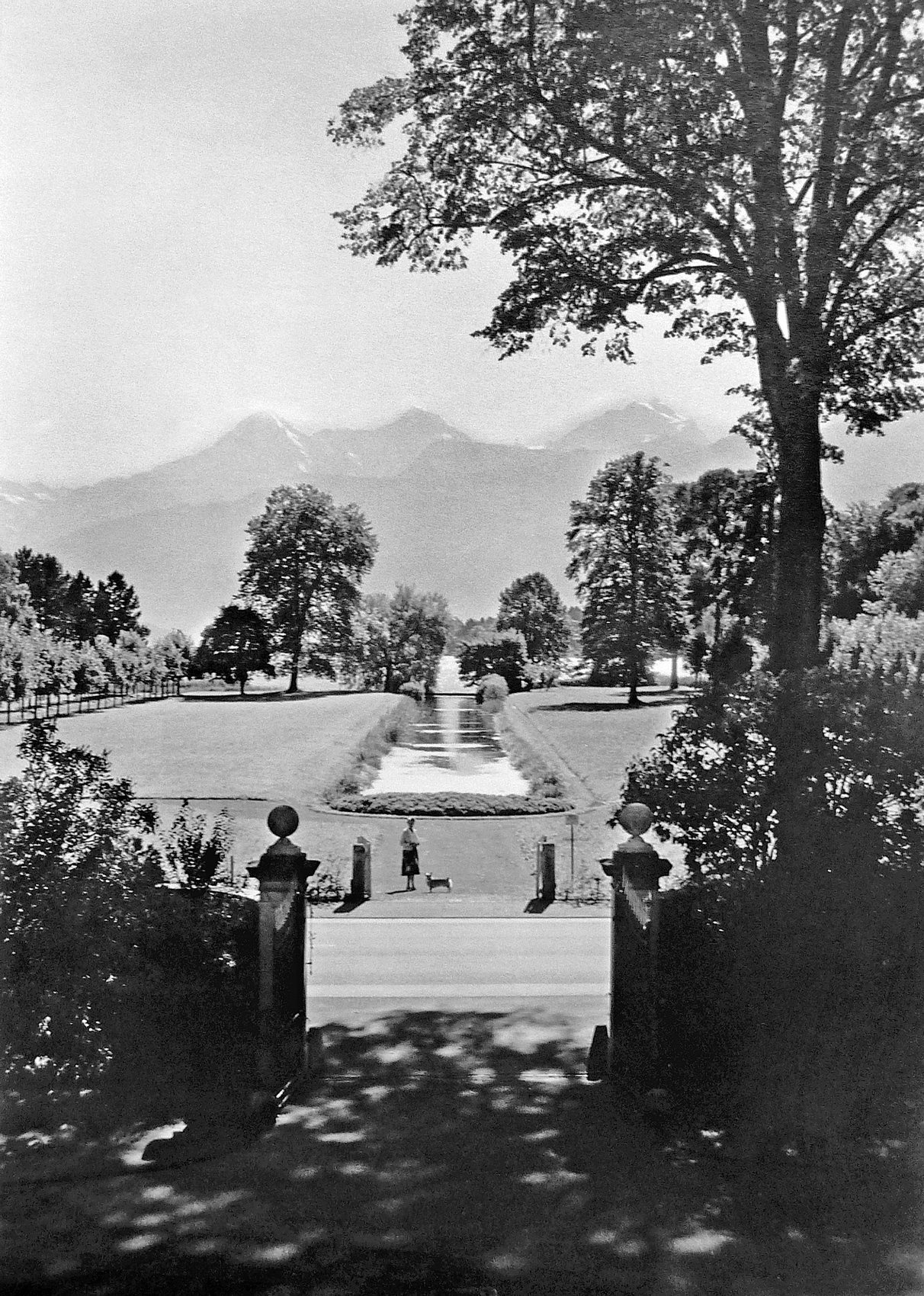 Nach 1930 liess Betty Lambert (Foto von 1957) nach aussen versetzte Alleen erstellen (Quelle: Familienarchiv).