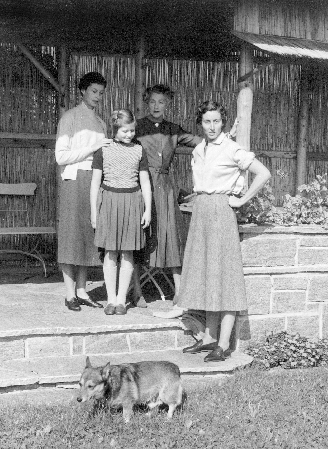 Betty Lambert und ihre Tochter Ynes (vorne rechts) in der Pergola ihres Gutsverwalters. Er hatte diese im Park auf der Eckparzelle erstellt, welche die Baronin ihm überschrieb (Quelle: Familienarchiv).